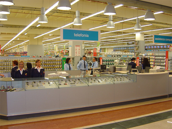 Concept d’aménagement des univers textile et Culture-Loisir et système signalétique d’ensemble de l’hypermarché IPER à Vérone (9.000 m2)