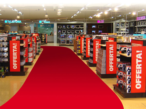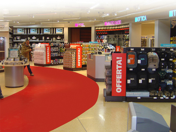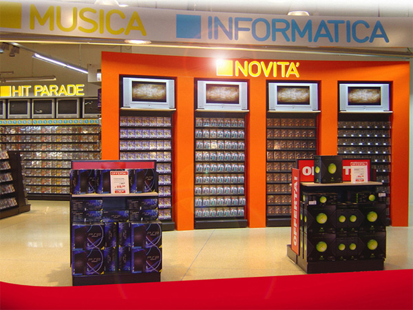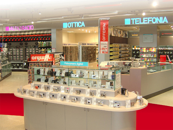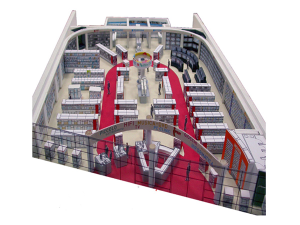 Concept d’aménagement et système signalétique de l’enseigne de produits Blanc-Brun-Loisir Numériques (1.600m2) de l’hypermarché Iplanet à Milan (en collaboration avec Design Day)